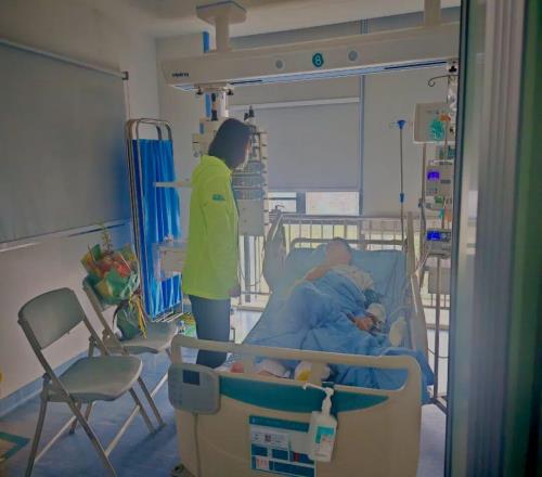 女子100米T64級(jí)決賽,廣東運(yùn)動(dòng)員蔣艷紅以14.99秒的成績(jī)奪冠。體育館內(nèi)配備的智能導(dǎo)盲犬設(shè)備。導(dǎo)盲犬與智能導(dǎo)...