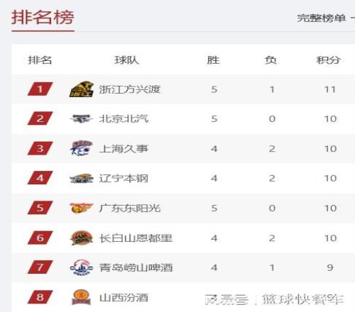 附:CBA積分榜最新排名