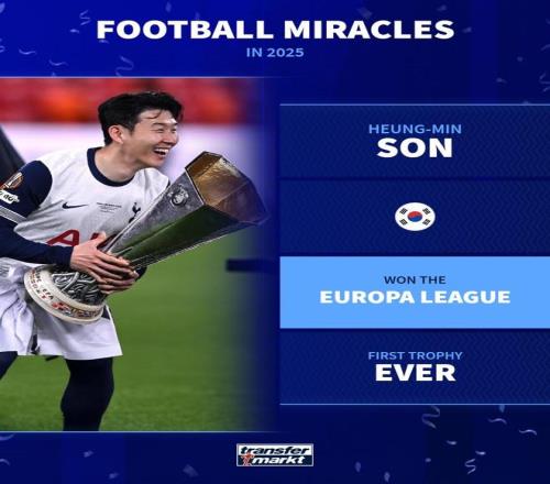 8、 熱刺歐聯(lián)杯決賽戰(zhàn)勝曼聯(lián)捧杯,孫興慜奪得生涯首座大賽冠軍獎(jiǎng)杯