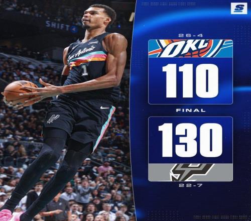 北京時間12月24日,雷霆客場110比130慘敗馬刺,吃到賽季第4場敗仗。這也是他們近5場比賽遭遇的第三場失利,同時還是他們本賽季第2次輸給馬刺——勇士拿到73勝那個賽季從未輸給同一支球隊2次。