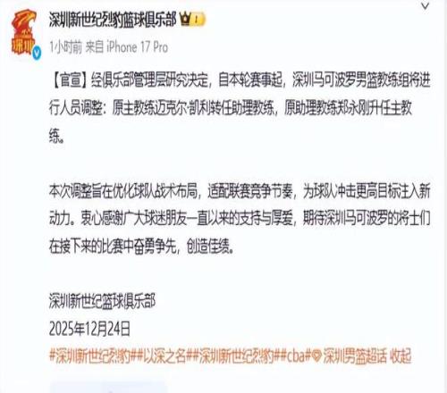 CBA新賽季僅打五輪,第一個下課的主教練出爐了。沒錯,這就是深圳隊的洋帥邁克爾.凱利已降為助理教練。今天上午深圳新世紀(jì)籃球俱樂部宣布,經(jīng)俱樂部管理層研究決定,自本輪賽事起,深圳馬可波羅男籃教練組將進(jìn)行人員調(diào)整:原主教練邁克爾.凱利轉(zhuǎn)任助理教練,原助理教練鄭永剛升任主教練。