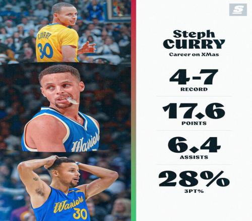 北京時間明日,一年一度的NBA圣誕大戰(zhàn)即將打響。今日,美媒曬出了勇士球星斯蒂芬-庫里的圣誕大戰(zhàn)數(shù)據(jù)。