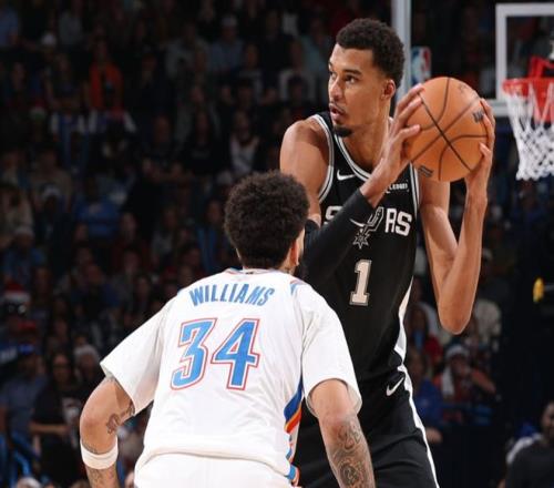 馬刺正在用表現(xiàn)證明,他們或許就是目前聯(lián)盟中最好的球隊。他們已經(jīng)連續(xù)兩場大勝雷霆,兩場比賽都早早進(jìn)入垃圾時間,一場在主場,一場在俄克拉荷馬城的客場。他們擁有三名能在48分鐘內(nèi)有效組織進(jìn)攻的后衛(wèi),而這三人甚至都不是球隊的最佳球員。剛從小腿傷勢中復(fù)出的文班亞馬仍受出場時間限制,距離最佳狀態(tài)更是相去甚遠(yuǎn)。