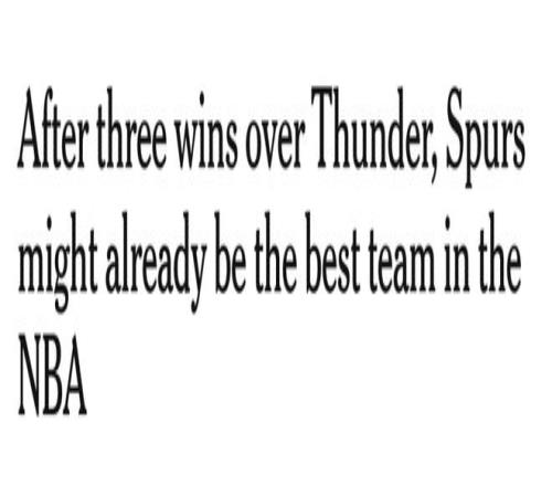 但馬刺在13天內(nèi)3勝雷霆的壯舉,無疑意義非凡。這場西部榜首兩強(qiáng)之間的漫長季后賽預(yù)演,確鑿無疑地證明:馬刺已經(jīng)準(zhǔn)備好與衛(wèi)冕冠軍并肩站在聯(lián)盟之巔。